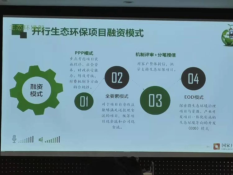 会上,生态环境部副部长赵英民,国家发改委、国家开发银行等单位有关人员分别作了致辞和讲话,相关专家就积极探索 EOD 模式创新发展生态产品第四产业、生态环境导向的开发模式试点实施要求、开发性金融支持生态环保政策与实践、EOD 模式试点项目实施方案编制要求与评审要点等专题进行了讲解,部分省(市)、单位进行了实施经验交流。