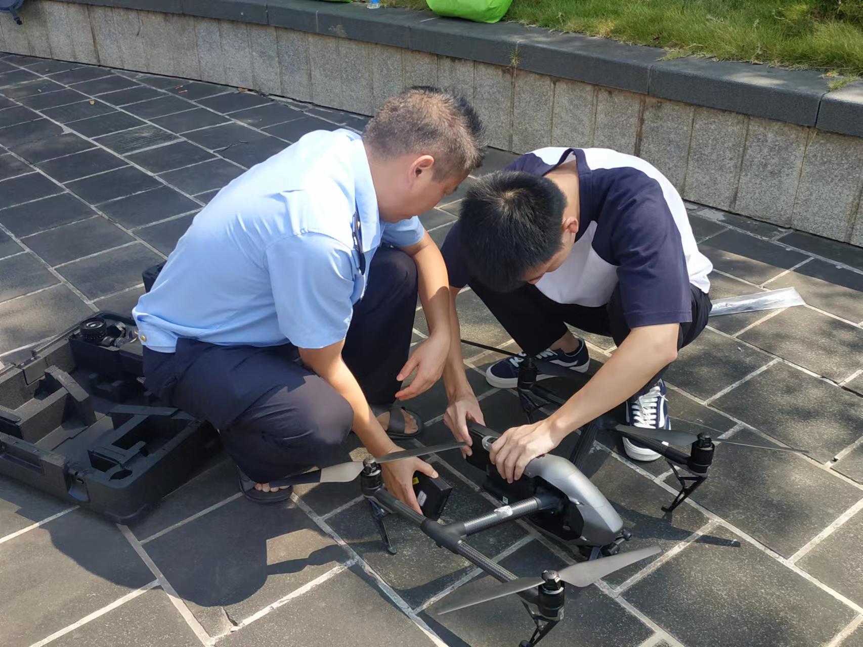 实操教学中,技术人员对无人机进行了详细的操作演示,学员们逐一操作练习了无人机的使用安装、起降操纵、摄像、照相等功能。